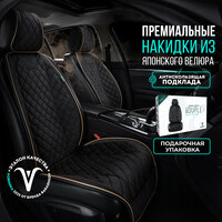 Купить Чехлы в машину на сиденья универсальные в салон 2 шт. Премиум модель DUPLEX. Чёрный/бежевая строчка с доставкой по всей России.