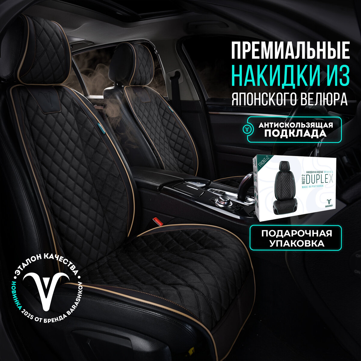 Чехлы в машину на сиденья универсальные в салон 2 шт. Премиум модель DUPLEX. Чёрный/бежевая строчка: сравнение цен, характеристики, фото, актуальное наличие и цены.