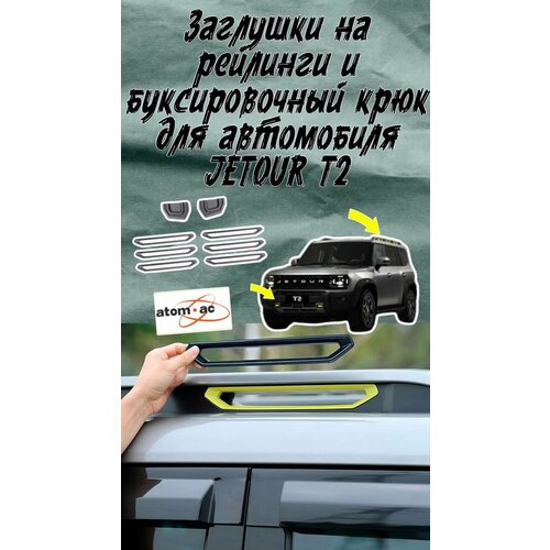 Комплект накладок на рейлинги 6 шт. и буксировочный крюк 2 шт. на Jetour T2, черный матовый: сравнение цен, характеристики, фото, актуальное наличие и цены.