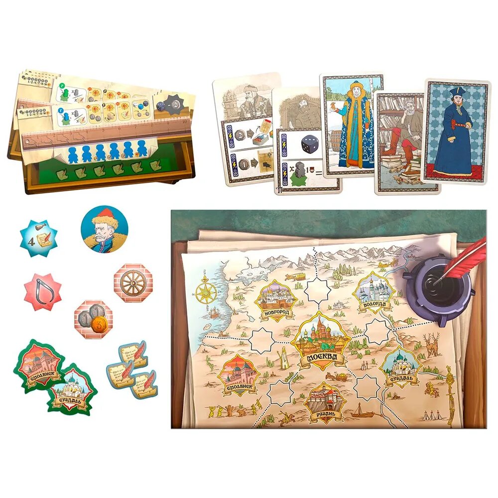 Приказчики – это дополнение к красочной стратегии о возведении культового собора Василия Блаженного Красный Собор. Коробка дополнения почти такая же большая, как и базовая игра – новых возможностей и новых стратегий выйдет немало! В игру добавляется сразу 10 новых гильдий, которые можно комбинировать с гильдиями базовой игры, значительно расширяя торговые возможности. Помимо этого в коробке дополнения вы найдете новые чертежи, фигурки казаков, бриллианты, дополнительный кубик, карта для одиночного режима и карта России, по которой вы будете путешествовать в поисках новых талантов.