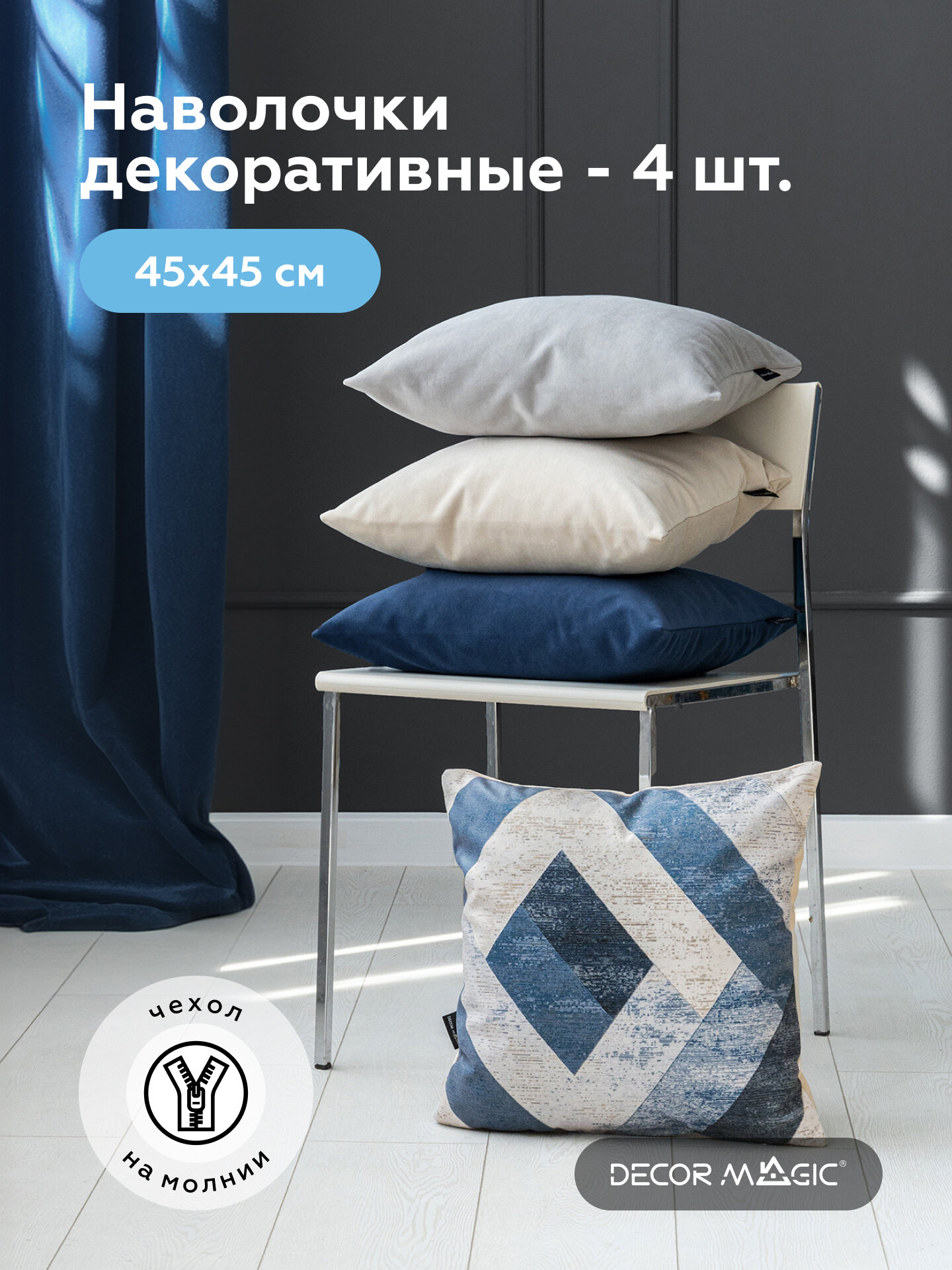 Комплект наволочек декоративных на молнии 4 шт 45х45 VERTO/SCRIPT: сравнение цен, характеристики, фото, актуальное наличие и цены.