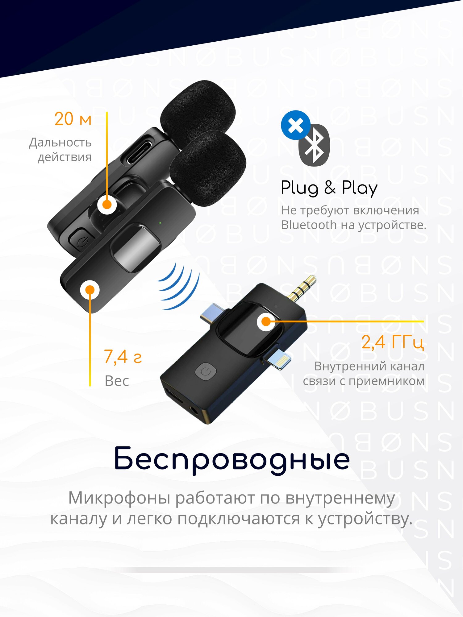 ✅ Качественный звук. Петличные микрофоны имеют функцию активного подавления внешних шумов, что будет особенно актуально при записи на улице - будет слышно только голос. Ловят сигнал на расстоянии до 20 метров.