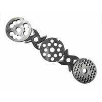 Используется в профессиональных мясорубках, работающих с большим объемом мясной продукции, предназначен для мелкого измельчения мяса и рыб на фарш. Комплект решеток и ножей подходит для мясорубки МИМ-80 без бурта. и др.