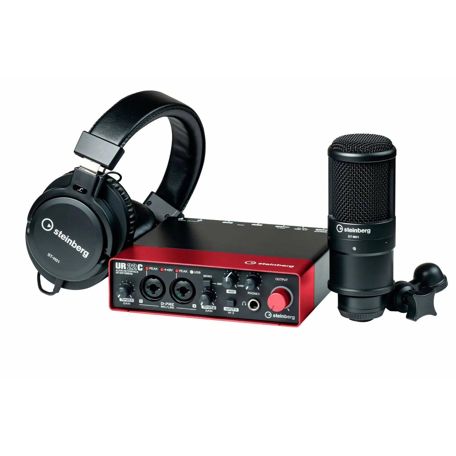 Steinberg UR22C Red Recording Pack – комплект из 2-канального аудиоинтерфейса, наушников закрытого типа и конденсаторного микрофона. Пак предназначен для домашней звукозаписи и имеет все необходимое для первых шагов в продакшне и сочинении музыки.