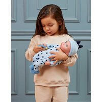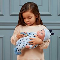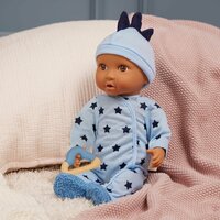 Развивающий комплект одежды для кукол-младенцев длиной 35,5 см включает в себя голубую пижаму-комбинезон со звездочками, пинетки, шапочку и прорезыватель. Яркий и удобный наряд станет отличным дополнением к игрушкам для детей. Пижама с застёжками легко надевается и снимается, что позволяет малышам самостоятельно переодевать своих кукол и развивать навыки мелкой моторики.