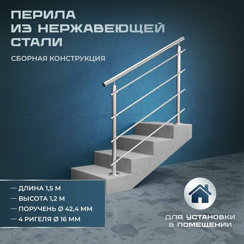 Перила для лестниц. Для помещений из нержавеющей стали, 1,5 метра: сравнение цен, характеристики, фото, актуальное наличие и цены.