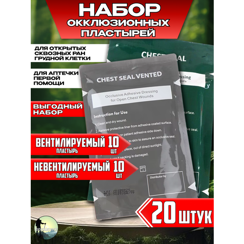 Комплект окклюзионных пластырей Chest Seal + Chest Seal Vented, 10комплектов 20шт: сравнение цен, характеристики, фото, актуальное наличие и цены.