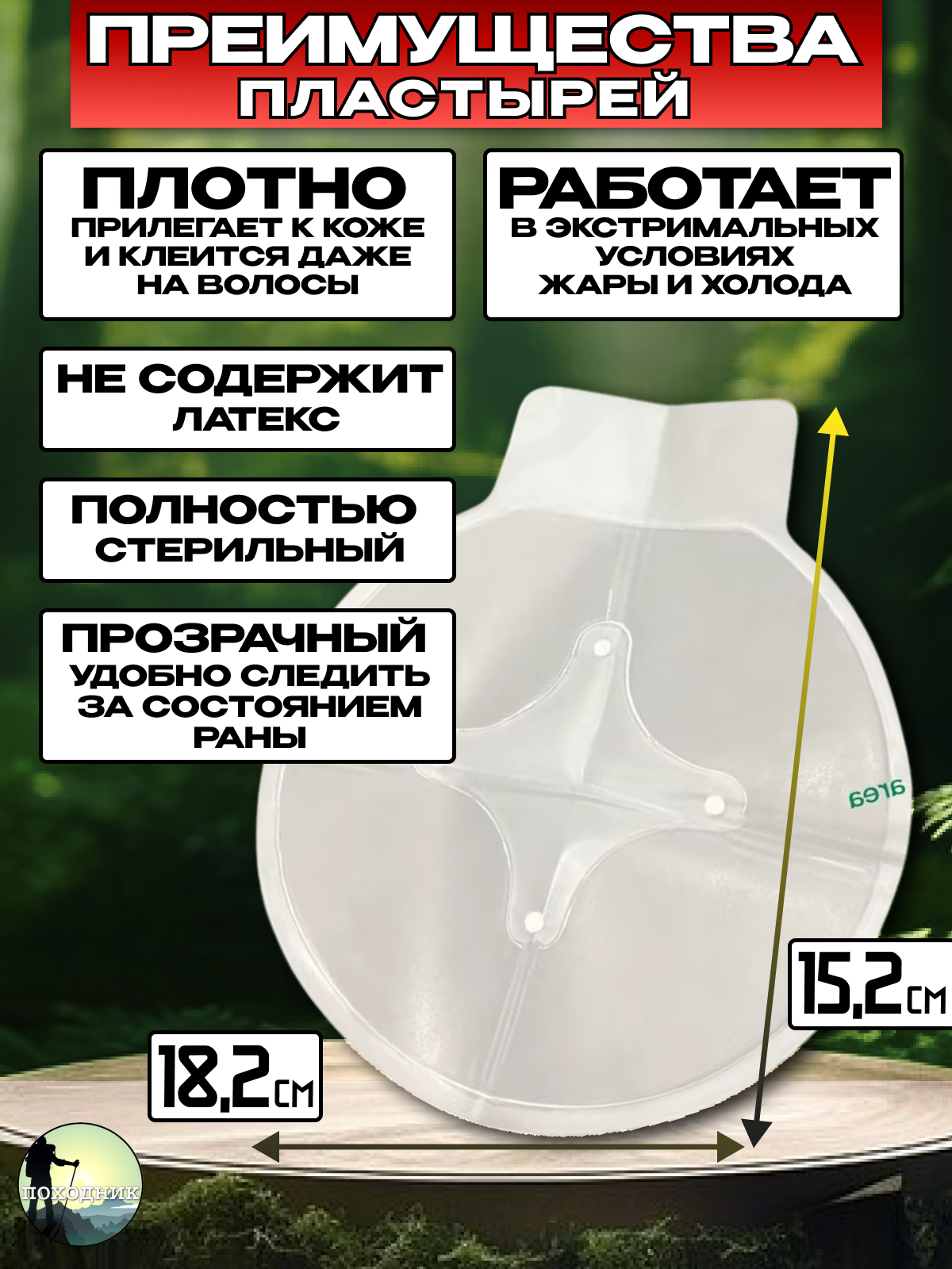 - Пластырь круглой формы диаметром 6 дюймов (152 мм)