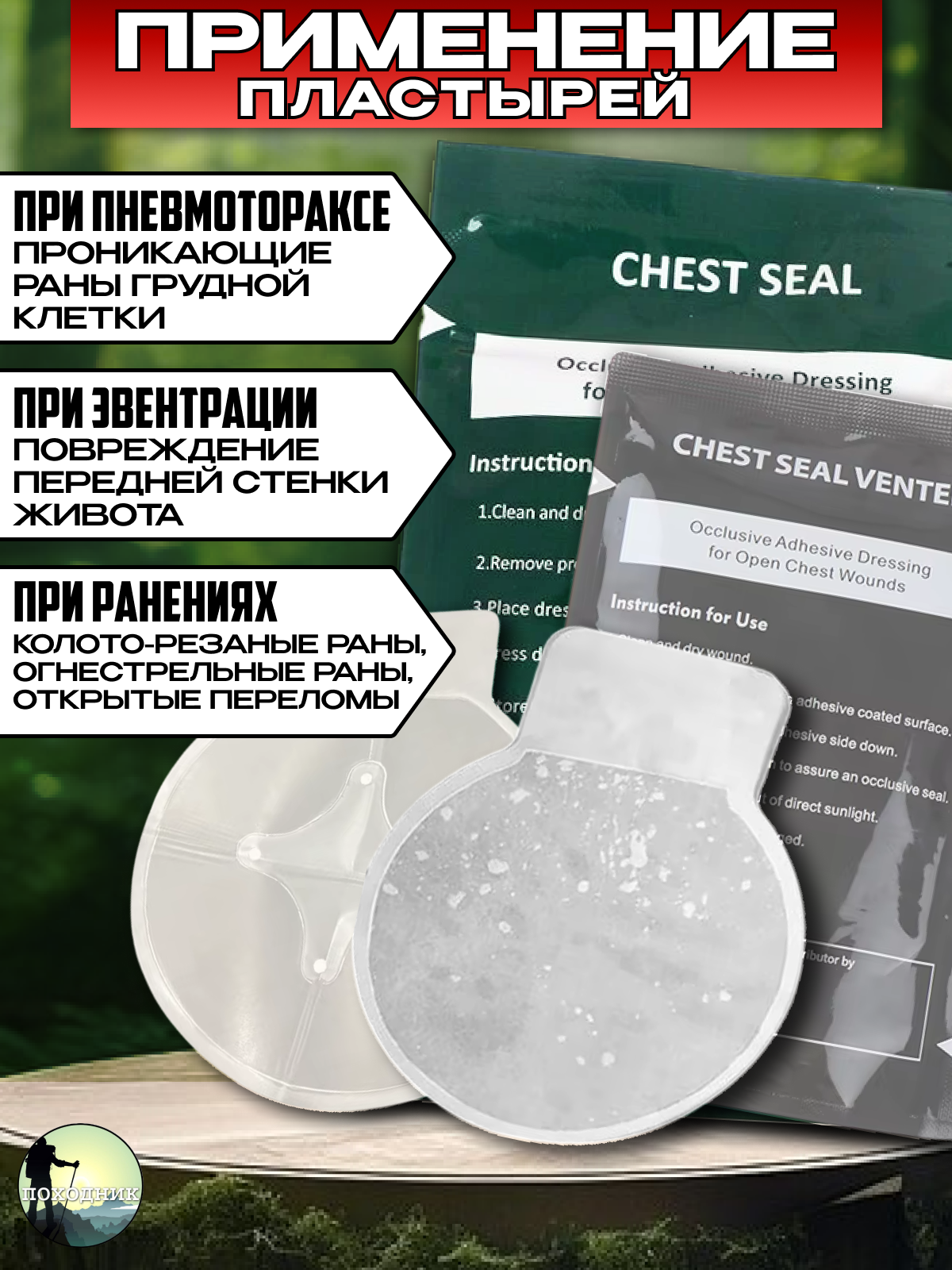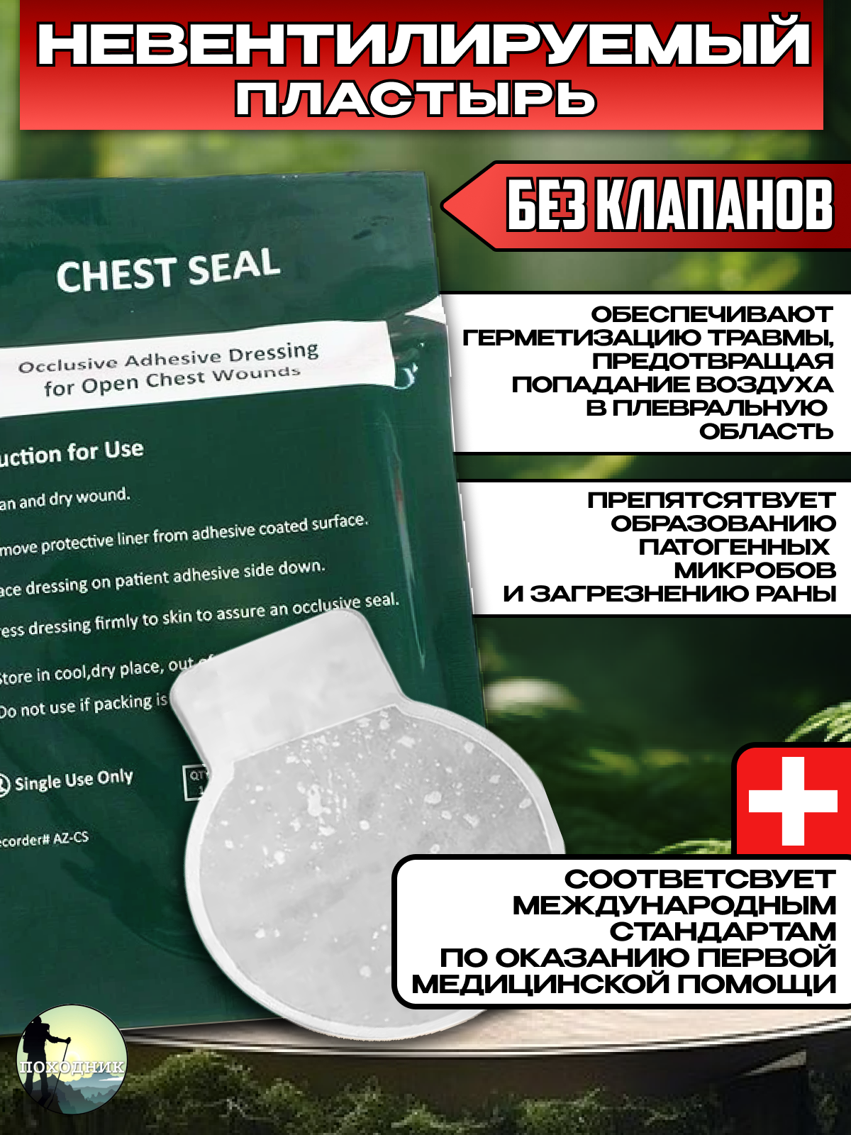 Сhest Seal - это окклюзионный пластырь, предназначенный для лечения открытых ран грудной клетки, угрожающих жизни, которые могут привести к напряженному пневмотораксу (вторая по распространенности причина предотвратимой смерти на поле боя).