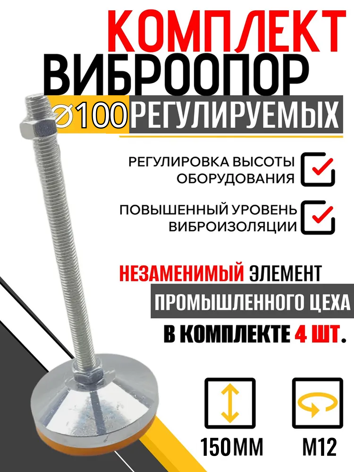 Комплект опор регулируемых винтовых D100 M12x150 мм для установки оборудования — 4 шт: сравнение цен, характеристики, фото, актуальное наличие и цены.