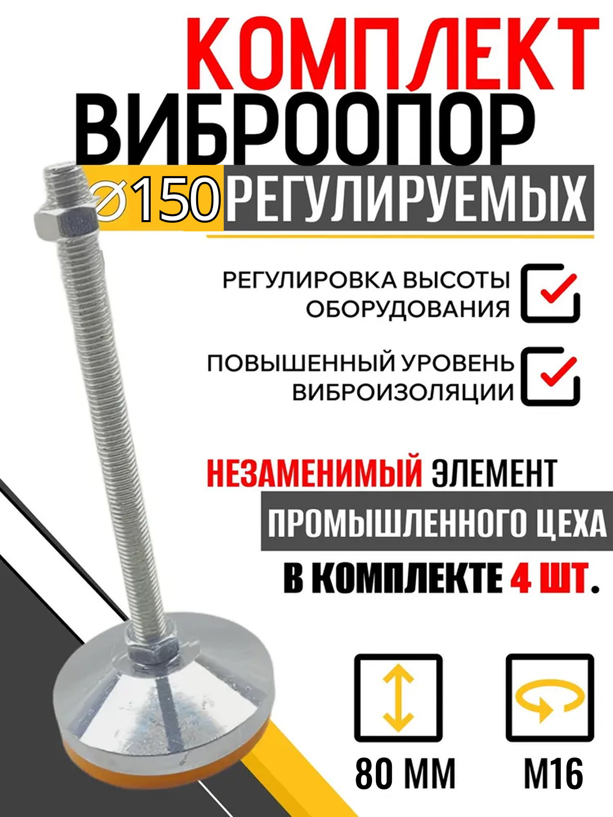Комплект опор регулируемых винтовых D150 M16x80 мм для установки оборудования — 4 шт: сравнение цен, характеристики, фото, актуальное наличие и цены.