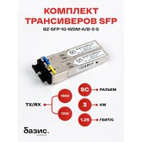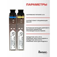 Купить Комплект оптических модулей SFP базис телеком, скорость передачи: 1,25 Гбит/с, разъем SC, длина волны 1310/1550 нм, расстояние передачи 3км с доставкой по всей России.