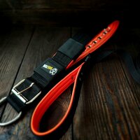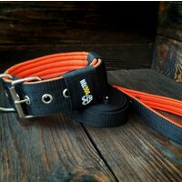 Комплект ошейник и поводок 1.5 для собак от DOGTON. Ошейник изготовлен из многослойной синтетической текстильный стропы. Такой материал очень прочен и долговечен, устойчив к истиранию и износу, хорошо справляется с водой, быстро сохнет.