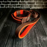 Комплект ошейник и поводок 1.5 для собак от DOGTON. Ошейник изготовлен из многослойной синтетической текстильный стропы. Такой материал очень прочен и долговечен, устойчив к истиранию и износу, хорошо справляется с водой, быстро сохнет.