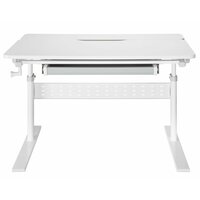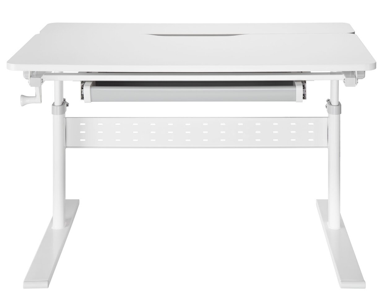 Блокирующая поворотная ручка обеспечивает безопасное положение на любой высоте. Безопасная конструкция парты предотвращает защемление маленьких ручек, когда столешница наклонена вниз. Неотражающая поверхность защищает маленькие глаза от бликов и вредных отражений. Система подъема кривошипа позволяет легко регулировать высоту парты.