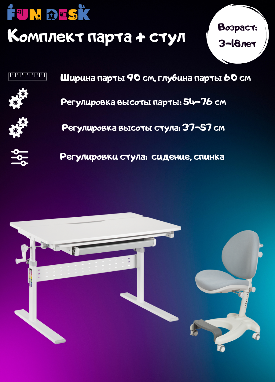 Комплект парта Colore Grey (new) + кресло Cielo Grey - это сочетание функциональности и стиля, которое станет незаменимым элементом в организации рабочего пространства вашего ребенка.