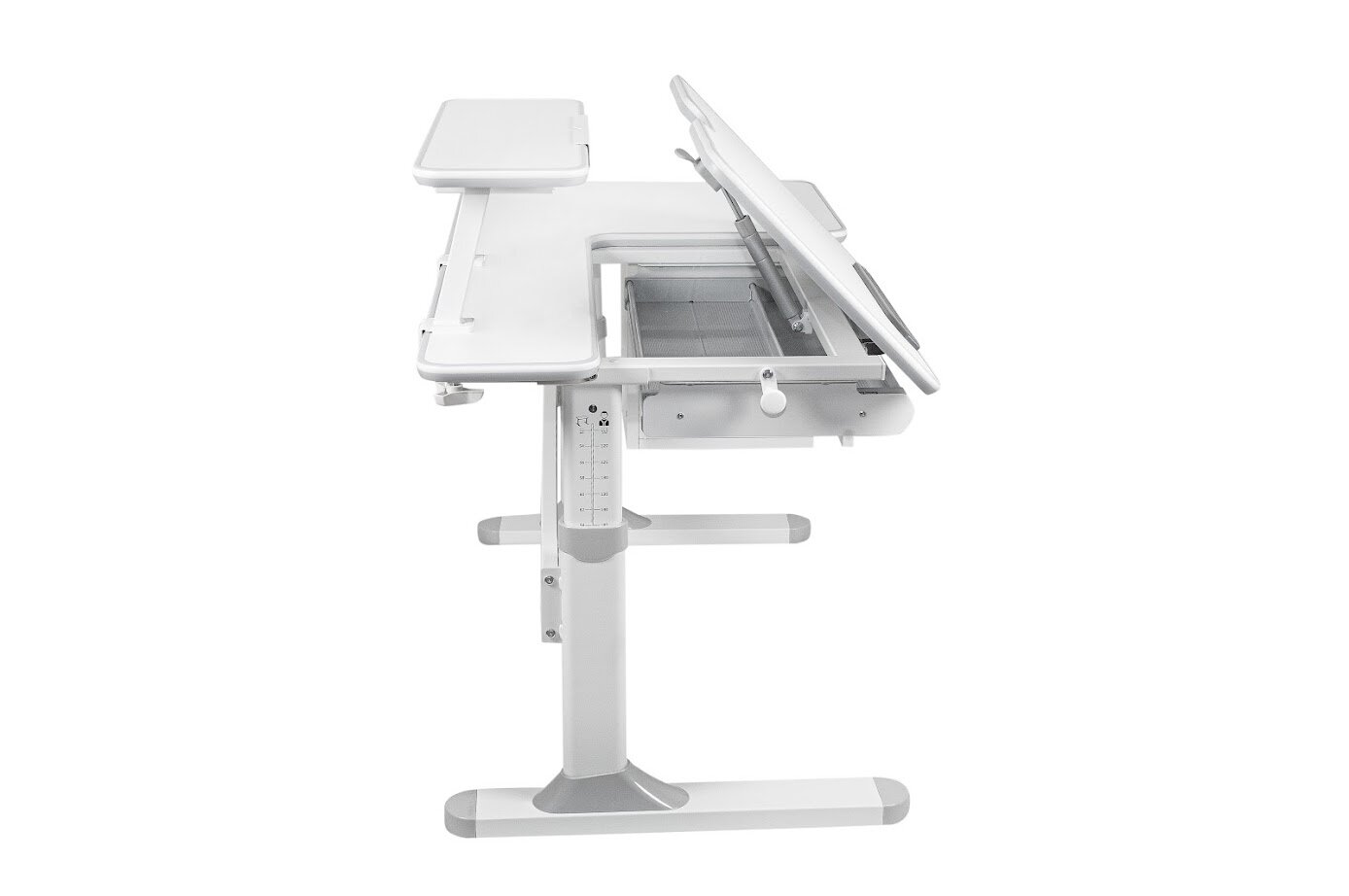 Парта Ortensia Grey изготовлена из качественного ЛДСП и стальной рамы, что обеспечивает прочность и долговечность конструкции. Наклоняемая часть столешницы имеет размеры 740 - 390 мм, что позволяет ребенку комфортно работать, сохраняя правильную осанку. Глубина парты составляет 600 мм, что делает ее достаточно просторной для размещения всех необходимых учебных материалов.