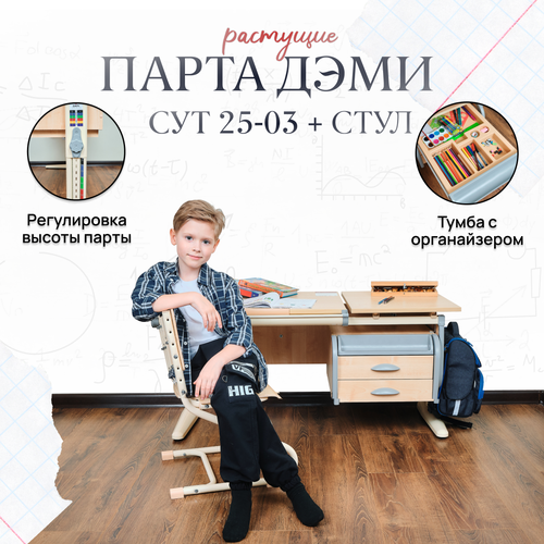 Комплект парта растущая ДЭМИ СУТ-25-03 с тумбой, со стулом, размер 120х55х81,5 см цвет ЛДСП клен, накладки серые, ноги бежевые: сравнение цен, характеристики, фото, актуальное наличие и цены.