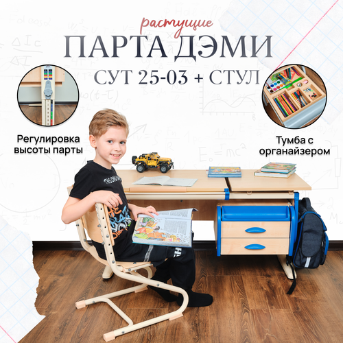 Комплект парта растущая ДЭМИ СУТ-25-03 с тумбой, со стулом, размер 120х55х81,5 см цвет ЛДСП клен, накладки синие, ноги бежевые: сравнение цен, характеристики, фото, актуальное наличие и цены.