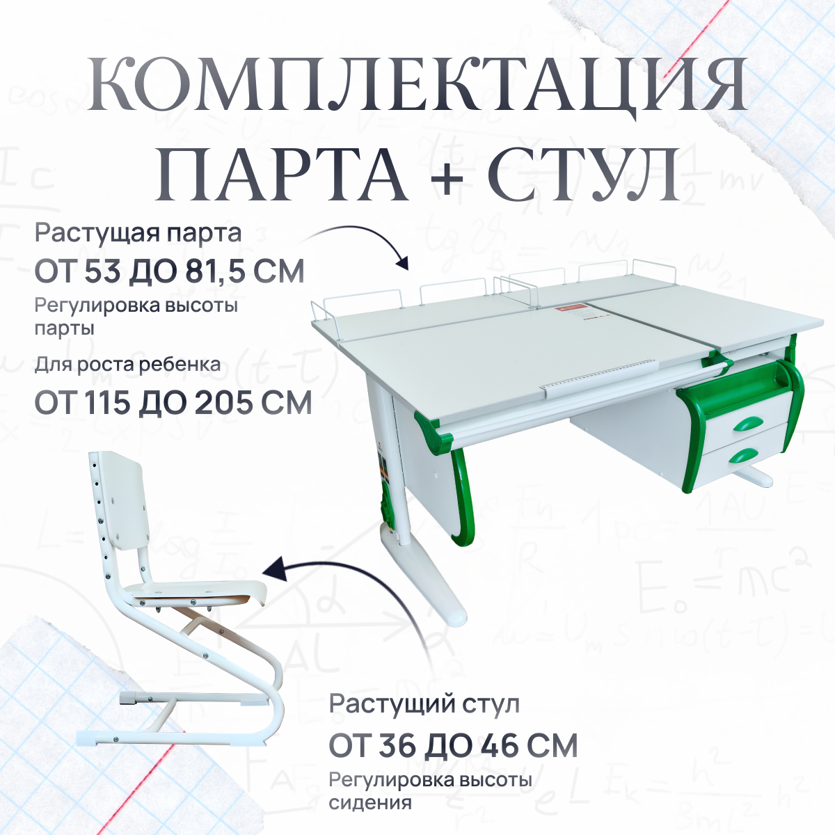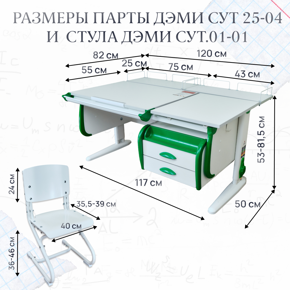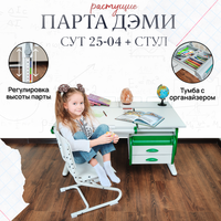 Комплект парта для дома ДЭМИ СУТ-25-04 - это отличный выбор для тех, кто ищет надежный, современный, удобный, красивый, растущий и функциональный письменный стол для своего ребенка.