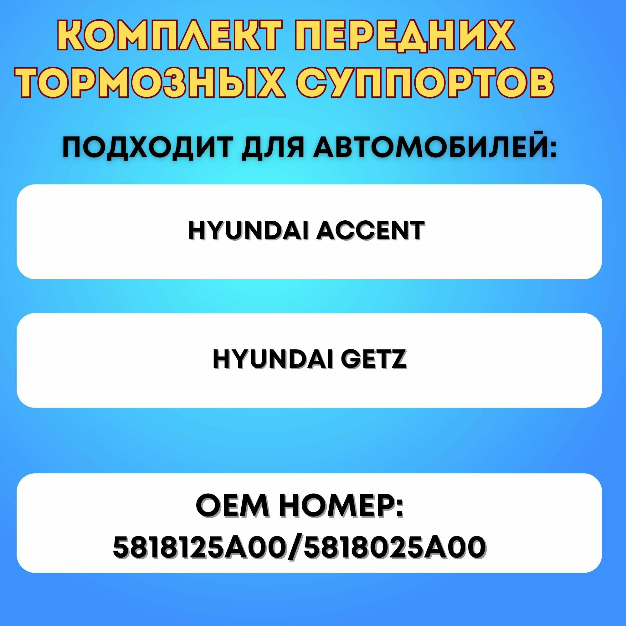 Купить Комплект передних суппортов Хендай Акцент/Хендай Гетц (правый и левый) с доставкой по всей России. Комплект передних суппортов Хендай Акцент/Хендай Гетц (правый и левый): сравнение цен, характеристики, фото, актуальное наличие и цены.