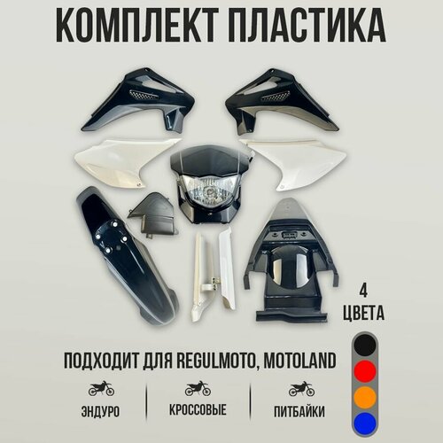 Комплект пластика для эндуро и кроссовых мотоциклов, питбайков Мотоленд, Регулмото, Прогаси, ОХО, ЖХЛ представляет собой тщательно разработанный набор деталей, предназначенных для полной или частичной замены внешнего обвеса вашего мотоцикла.