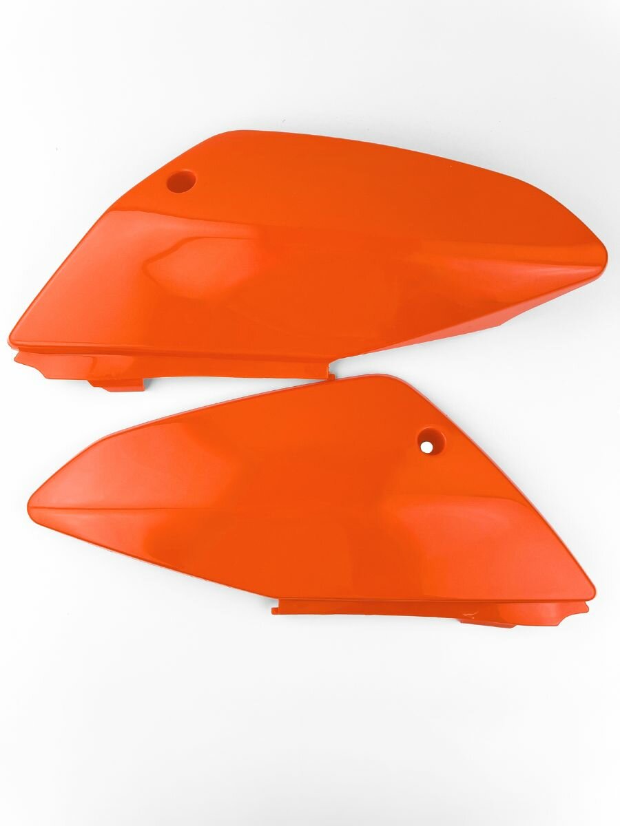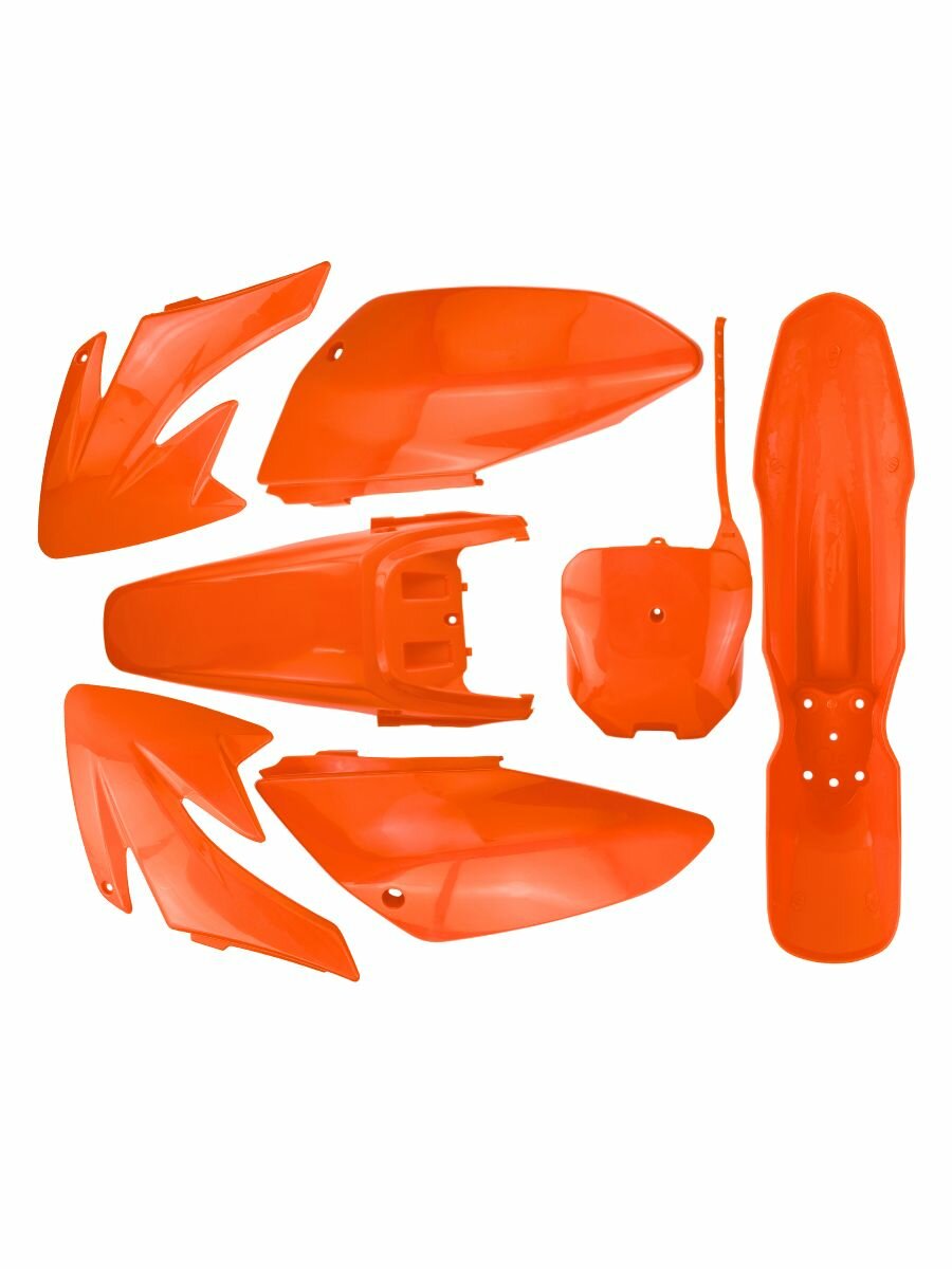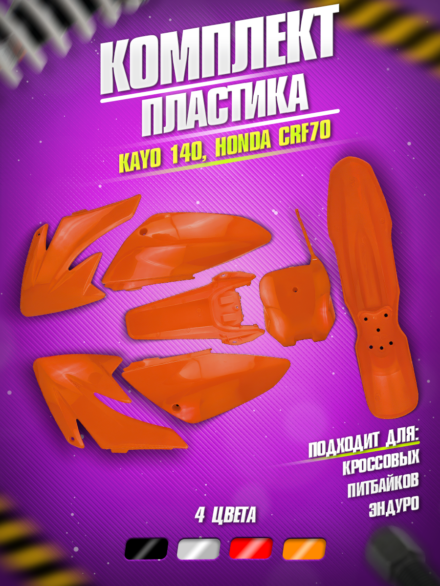 Оранжевый комплект пластика для питбайков, эндуро и кроссовых мотоциклов – это высококачественный набор деталей, предназначенный для полной или частичной замены внешнего обвеса мотоциклов таких моделей, как Ирбис ТТР125, Ирбис ТТР110, Honda, Kayo, Regulmoto, Motoland и других. Комплект пластика на эндуро включает в себя переднее и заднее крылья, номерной щиток, боковые обтекатели и облицовки бака, которые не только обновляют внешний вид мотоцикла, но и обеспечивают надежную защиту его внутренних механизмов.