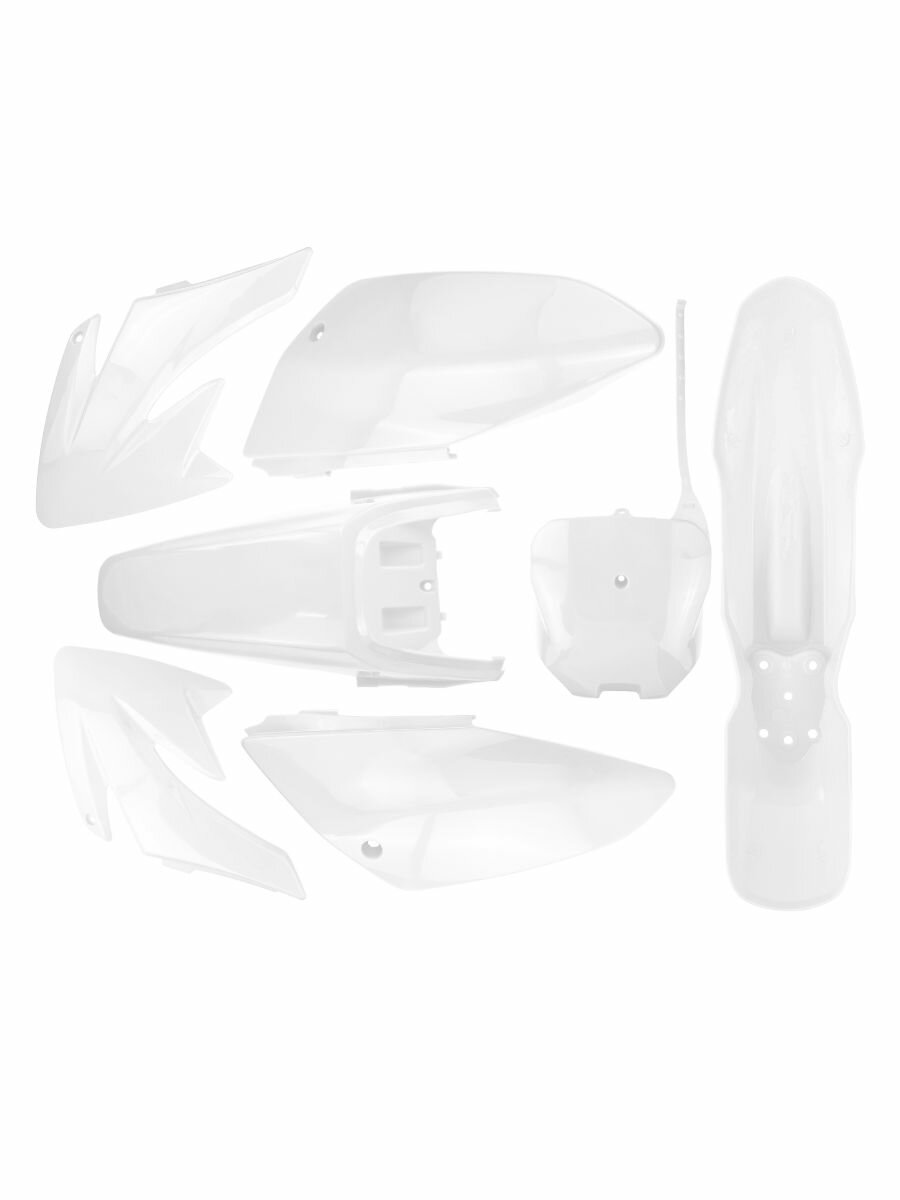 Белый комплект пластика для питбайков, эндуро и кроссовых мотоциклов – это высококачественный набор деталей, предназначенный для полной или частичной замены внешнего обвеса мотоциклов таких моделей, как Ирбис, Honda, Kayo, Regulmoto, Motoland и других. Комплект пластика на эндуро включает в себя переднее и заднее крылья, номерной щиток, боковые обтекатели и облицовки бака, которые не только обновляют внешний вид мотоцикла, но и обеспечивают надежную защиту его внутренних механизмов.