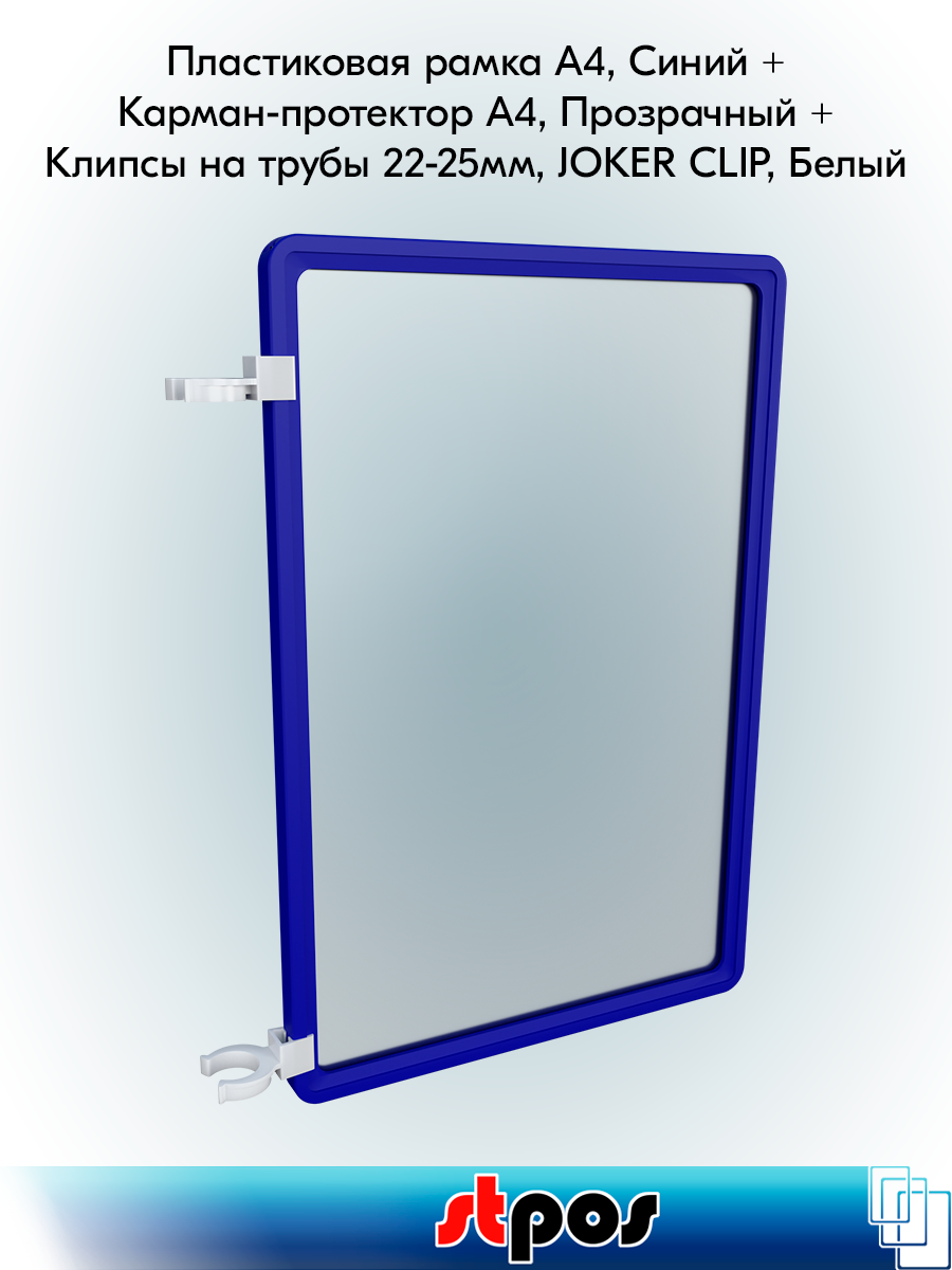 Купить Комплект Пластиковая рамка А4, Синий-5шт + Карман-протектор A4-5шт + Клипсы на трубы 22-25мм, JOKER CLIP, Белый-10шт с доставкой по всей России.