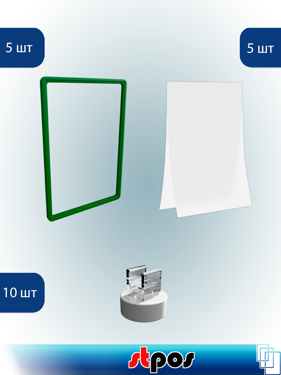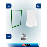 Купить Комплект Пластиковая рамка А4, Зеленый- 5шт+Карман-протектор A4 — 5шт+Магнитный держатель MGT-RND-90, Серый — 10шт с доставкой по всей России.