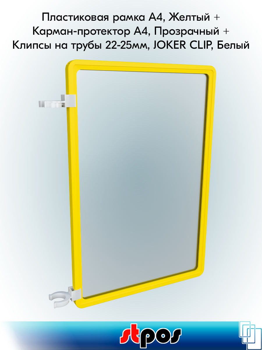 Купить Комплект Пластиковая рамка А4, Желтый-5шт+Карман-протектор A4-5шт+Клипсы на трубы 22-25мм, JOKER CLIP, Белый-10шт с доставкой по всей России.