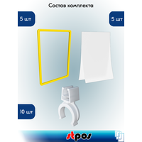 Комплект Пластиковая рамка А4, Желтый-5шт+Карман-протектор A4-5шт+Клипсы на трубы 22-25мм, JOKER CLIP, Белый-10шт: сравнение цен, характеристики, фото, актуальное наличие и цены.