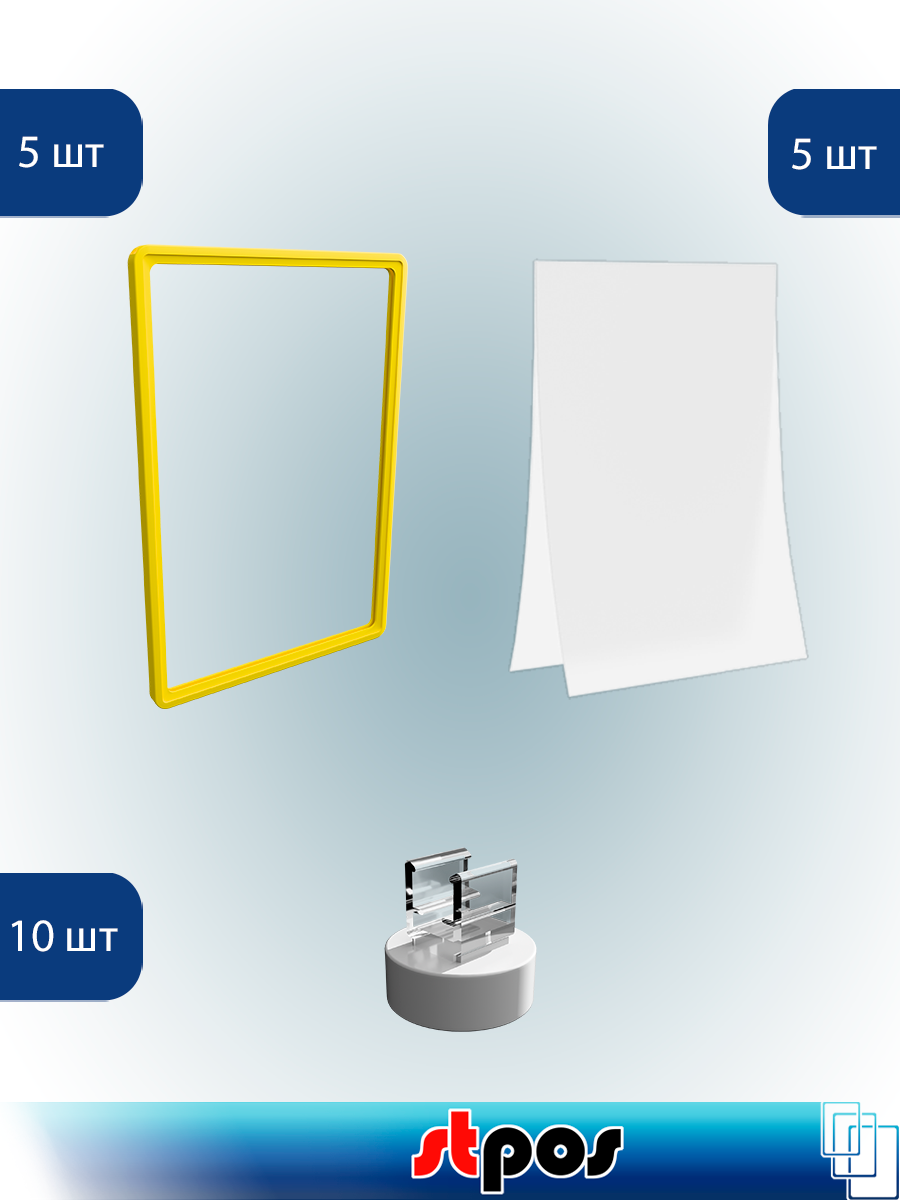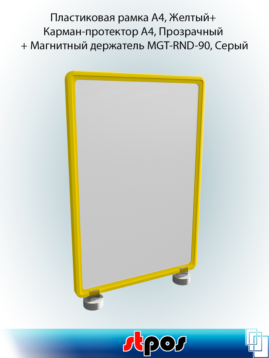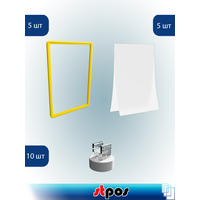 Купить Комплект Пластиковая рамка А4, Желтый — 5шт+Карман-протектор A4 — 5шт+Магнитный держатель MGT-RND-90, Серый — 10шт с доставкой по всей России.