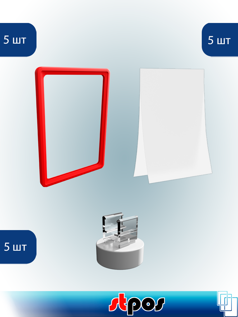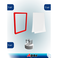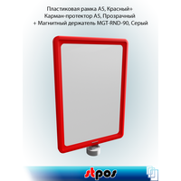 Купить Комплект Пластиковая рамка А5, Красный + Карман-протектор A5, Прозрачный + Магнитный держатель MGT-RND-90, Серый по 5 шт с доставкой по всей России.