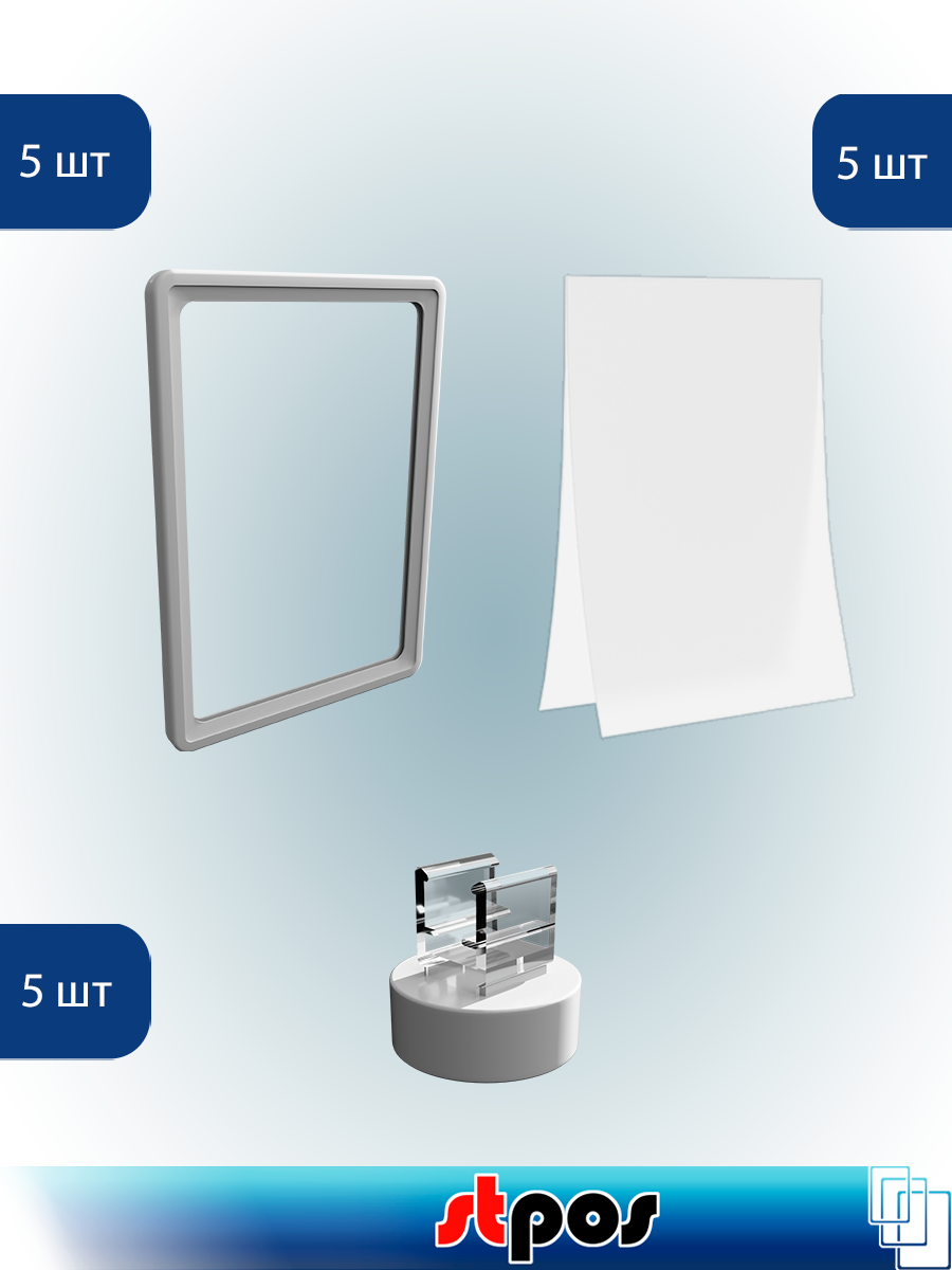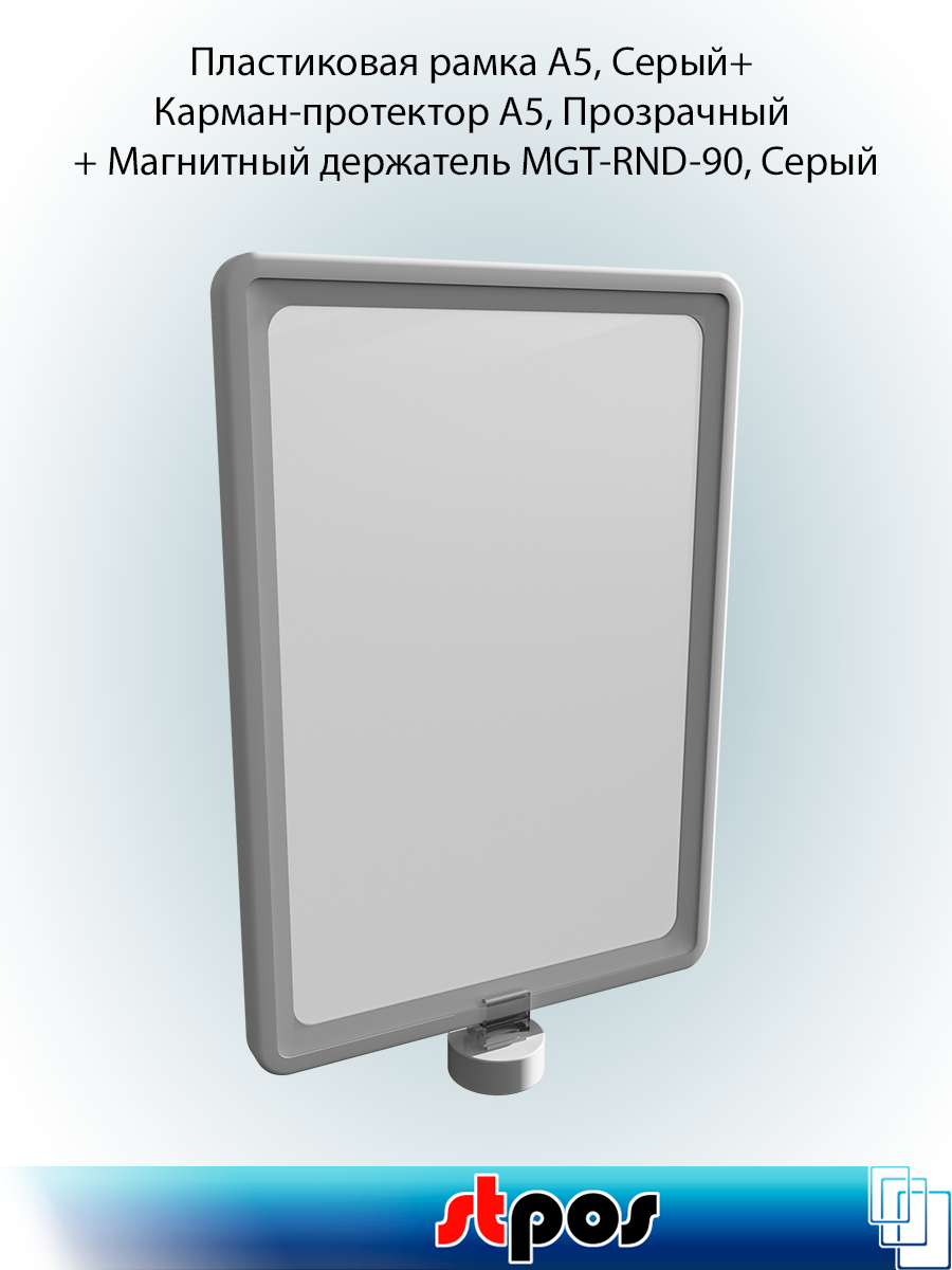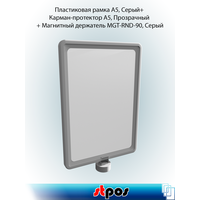 Купить Комплект Пластиковая рамка А5, Серый + Карман-протектор A5, Прозрачный + Магнитный держатель MGT-RND-90, Серый по 5 шт с доставкой по всей России.