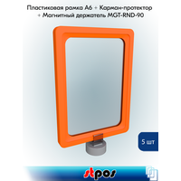 Купить Комплект Пластиковая рамка А6, Оранжевый+ Карман-протектор A6 + Магнитный держатель MGT-RND-90, Серый по 5 шт с доставкой по всей России.