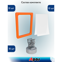 Купить Комплект Пластиковая рамка А6, Оранжевый+ Карман-протектор A6, Проз. + Магнитный держатель MGT-RND-180, Серый по 10 шт с доставкой по всей России.