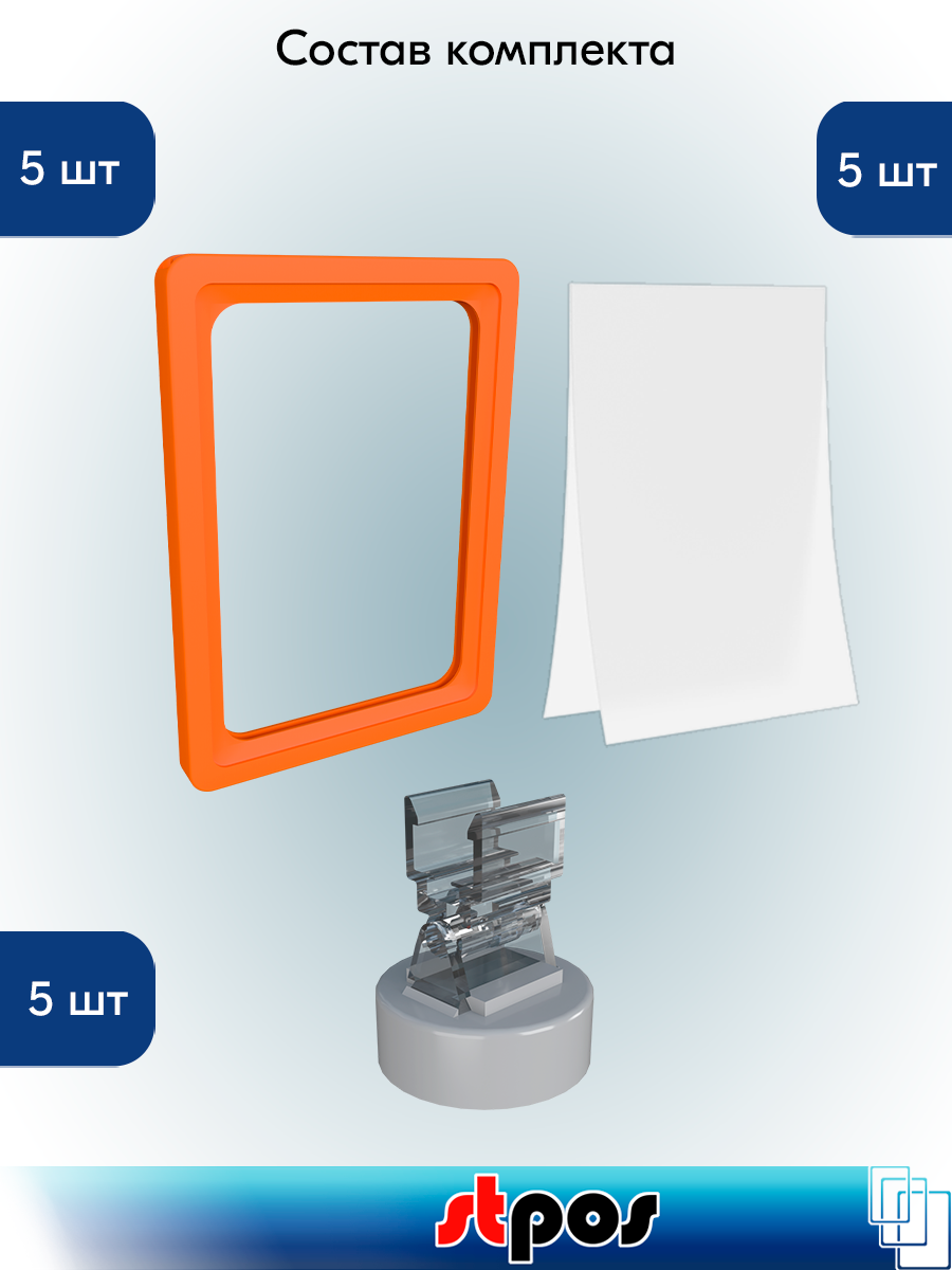 Купить Комплект Пластиковая рамка А6, Оранжевый + Карман-протектор A6, Прозр. + Магнитный держатель MGT-RND-180, Серый по 5 шт с доставкой по всей России.
