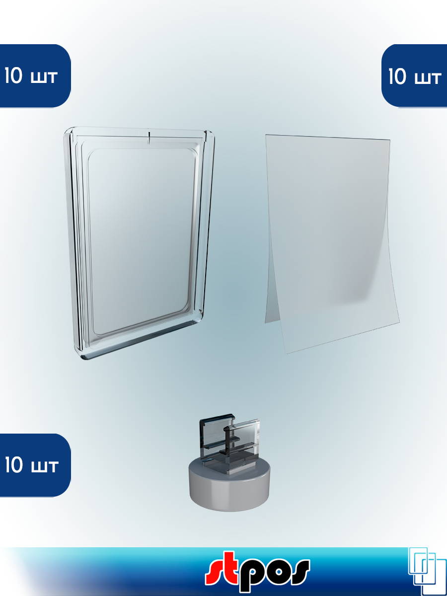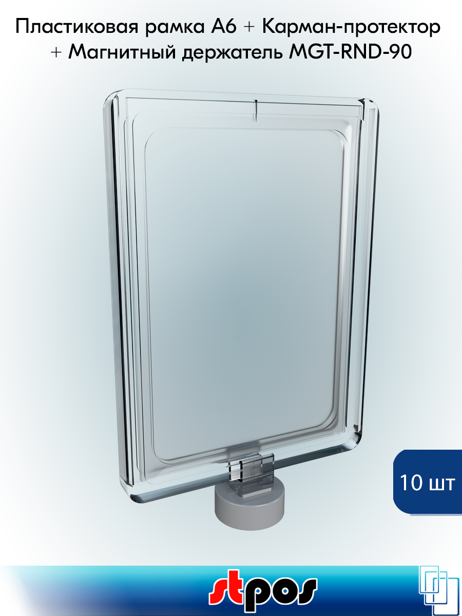 Комплект Пластиковая рамка А6, Прозрачный+ Карман-протектор A6 + Магнитный держатель MGT-RND-90, Серый по 10 шт: сравнение цен, характеристики, фото, актуальное наличие и цены.