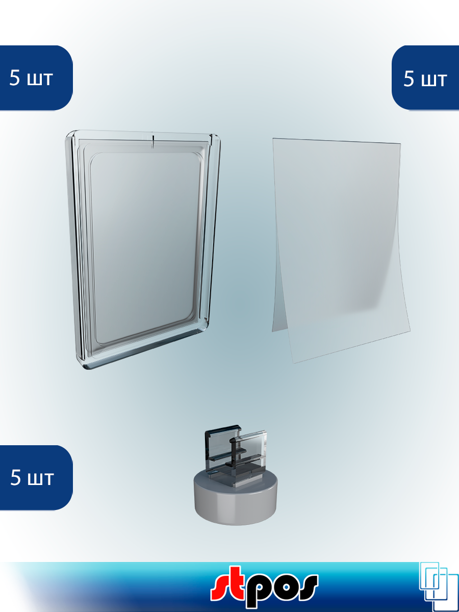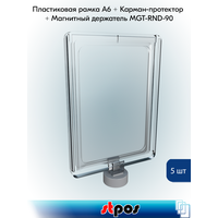 Купить Комплект Пластиковая рамка А6, Прозрачный+ Карман-протектор A6+ Магнитный держатель MGT-RND-90, Серый по 5 шт с доставкой по всей России.
