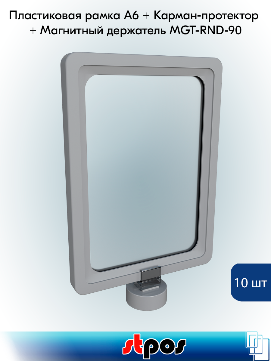 Купить Комплект Пластиковая рамка А6, Серый + Карман-протектор A6, Прозрачный + Магнитный держатель MGT-RND-90, Серый по 10 шт с доставкой по всей России.