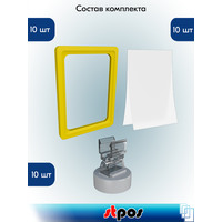 Комплект Пластиковая рамка А6, Желтый+ Карман-протектор A6, Проз. + Магнитный держатель MGT-RND-180, Серый по 10 шт: сравнение цен, характеристики, фото, актуальное наличие и цены.
