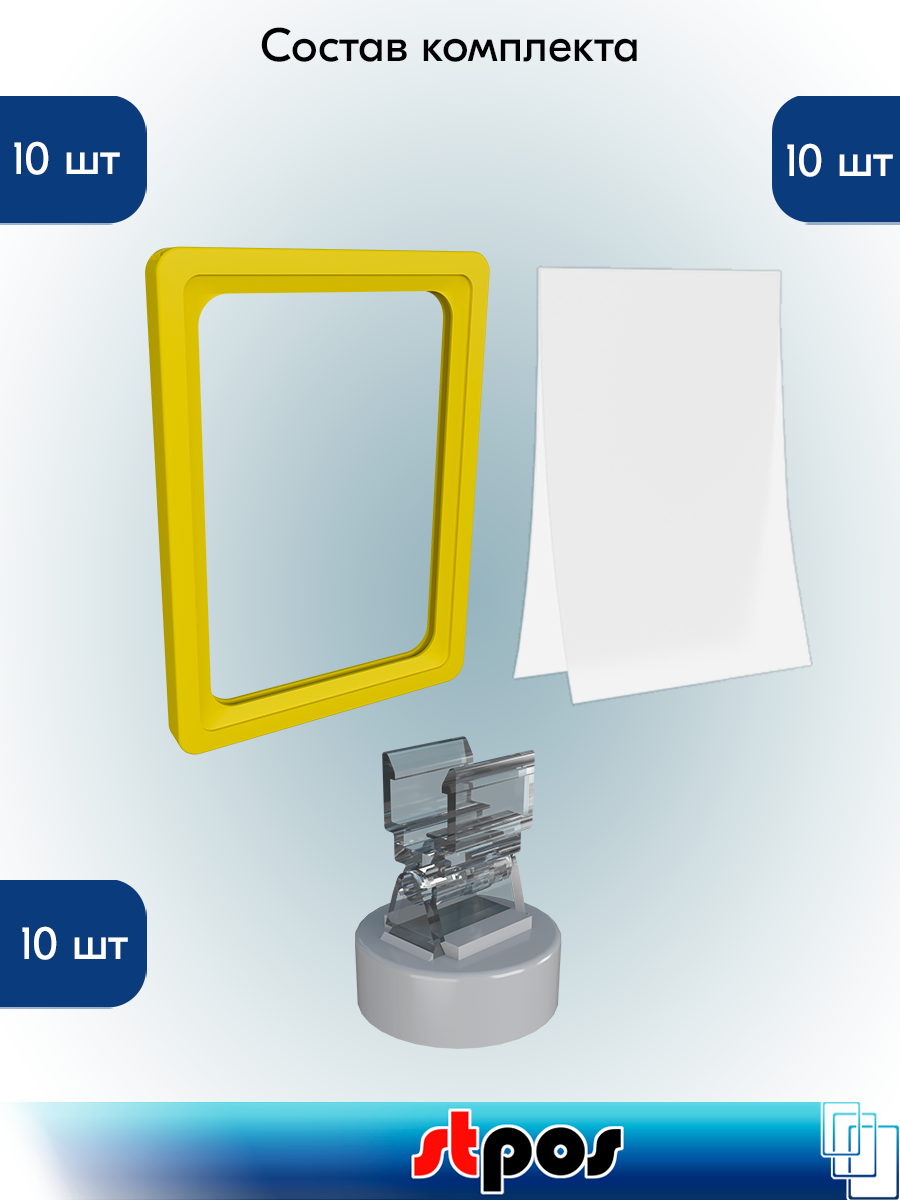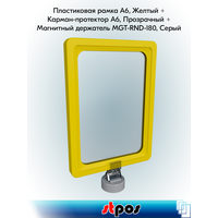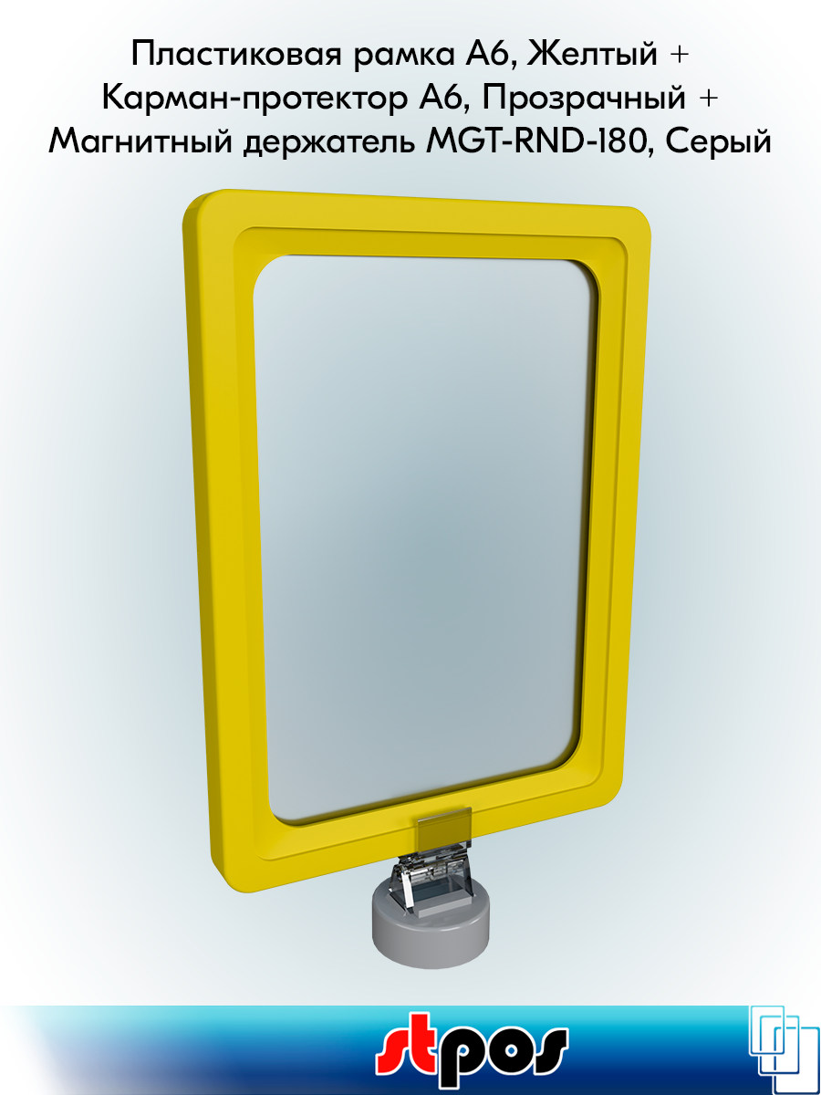 Купить Комплект Пластиковая рамка А6, Желтый+ Карман-протектор A6, Проз. + Магнитный держатель MGT-RND-180, Серый по 10 шт с доставкой по всей России.