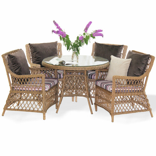 Комплект плетеной мебели Гайс MALACCA из ротанга с подушками (обеденный круглый стол + 4 кресла), искусственный ротанг, зебрано: сравнение цен, характеристики, фото, актуальное наличие и цены.