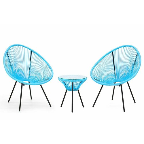 Комплект плетеной мебели KORNERA «Акапулько» на 2 персоны, каркас черный, искусственный ротанг голубой: сравнение цен, характеристики, фото, актуальное наличие и цены.