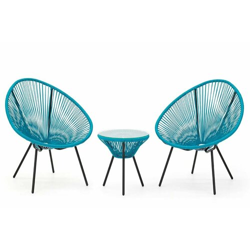 Комплект плетеной мебели KORNERA «Акапулько» на 2 персоны, каркас черный, искусственный ротанг темно-бирюзовый: сравнение цен, характеристики, фото, актуальное наличие и цены.