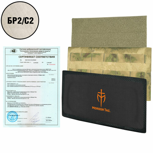 Для модуля предусмотрена опция с сертифицированной по классу защиты Бр2/С2 баллистической плитой из 35 слоев термопрессованного свмпэ. Заверенный сертификат соответствия идет в комплекте.