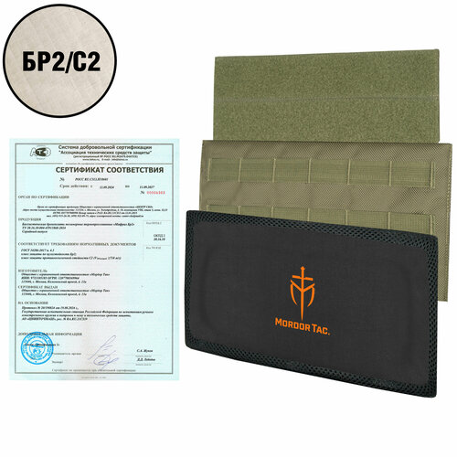Для модуля предусмотрена опция с сертифицированной по классу защиты Бр2/С2 баллистической плитой из 35 слоев термопрессованного свмпэ. Заверенный сертификат соответствия идет в комплекте.