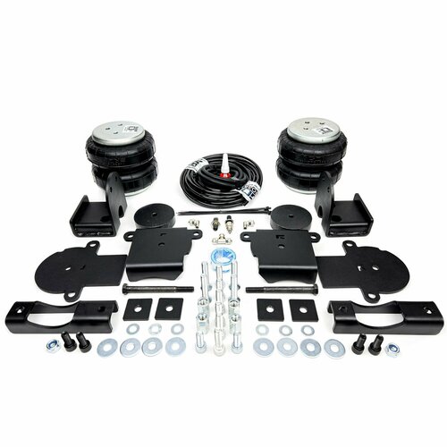 Комплект пневматической подвески разработан специально для Volkswagen Amarok и включает в себя две пневмоподушки, кронштейны для крепления к раме и мосту, крепеж, фурнитуру для накачки от внешнего компрессора, а также инструкцию по установке своими руками или автосервисе.