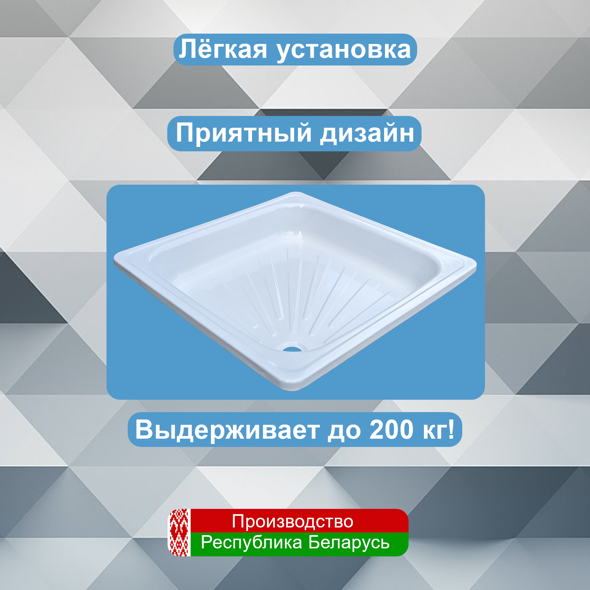 Современный душевой поддон квадратной формы размером 80х80 см – надежное решение для обустройства комфортного душевого уголка в вашей ванной комнате. Этот качественный поддон для душа от проверенного белорусского производителя станет отличным выбором для тех, кто ценит практичность и долговечность. Поддон в ванную изготовлен из высококачественной стали толщиной 1.5 мм с долговечным эмалированным покрытием, которое защищает от коррозии и облегчает уход за изделием. Компактная квадратная форма позволяет эффективно использовать пространство даже в небольших помещениях, а глубина 14 см обеспечивает оптимальный комфорт при принятии водных процедур. Продуманная конструкция поддона для купания включает сливное отверстие диаметром 52 мм, к которому подключается надежный сифон с гидрозатвором. Сифон оснащен системой быстрого монтажа и имеет встроенный уловитель волос, что значительно упрощает обслуживание и предотвращает засоры. Гидрозатвор эффективно препятствует проникновению неприятных запахов из канализации, поддерживая свежесть в ванной комнате. Эмалированное покрытие не только придает душевой комплект эстетичный внешний вид, но и защищает металл от воздействия влаги, что значительно продлевает срок службы изделия. Благодаря своей прочности и качеству исполнения, поддон способен выдерживать значительные нагрузки и сохранять первоначальный вид на протяжении многих лет. Универсальная квадратная форма позволяет установить душевой комплект как в углу, так и по центру ванной комнаты, предоставляя гибкие варианты планировки пространства. Белый цвет и классический дизайн гармонично впишутся в любой интерьер, а продуманная конструкция делает процесс монтажа максимально комфортным. Этот поддон для купания станет надежным и практичным решением, сочетая в себе качество исполнения, функциональность и доступную цену.